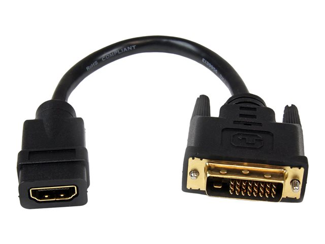 DVI-D mâle pour HDMI femelle - 20 cm - noir - vis moletées, support 1080 p 60 Hz
