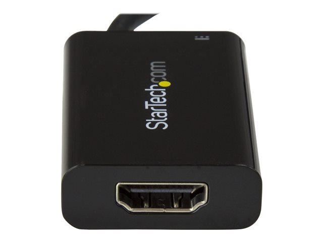 Ce convertisseur USB-C vers HDMI possède un boîtier entièrement noir et un câble USB-C intégré conçu pour s''adapter à votre Ultrabook ou à votre ordinateur portable. Cet adaptateur est compatible avec tous les appareils compatibles avec USB-C DP Alt Mode.