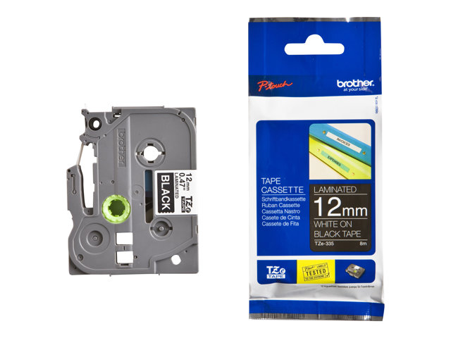 Ce ruban laminé pour étiqueteuse TZe-335 Brother de 12 mm est compatible avec une large gamme d'étiqueteuses P-touch de Brother. Le ruban ayant été développé pour résister aux conditions extrêmes, vous pouvez être assuré que la température, la lumière du soleil, l'eau, les produits chimiques et l'abrasion n'altéreront pas la lisibilité et l'adhérence de vos étiquettes.