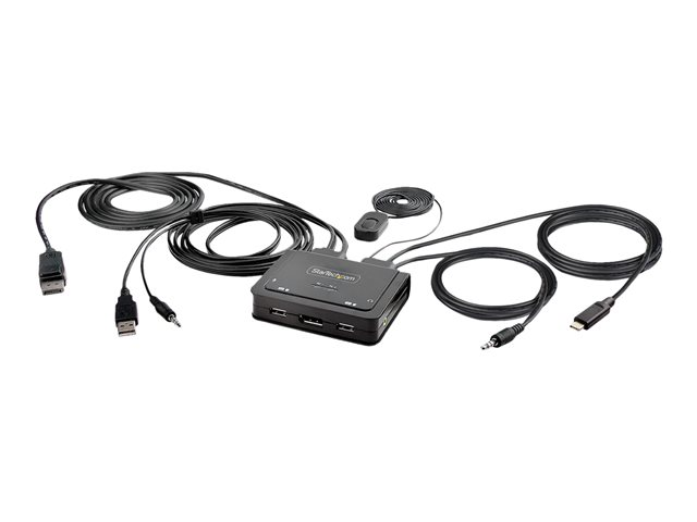 StarTech.com 2-Port Hybrid USB-C DisplayPort Cable KVM Switch, 4K 60Hz, Compact KVM with 6ft/1.8m USB-A/DisplayPort/Audio & 4ft/1.2m USB-C Integrated Host Cables, Bus Powered
