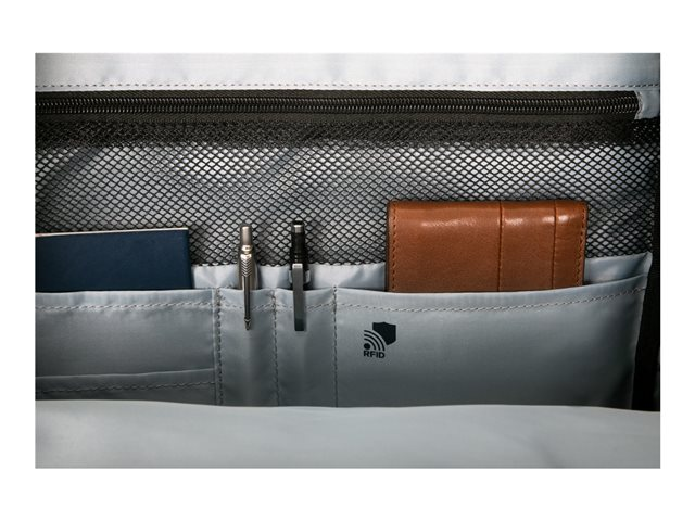 Fabriqué à partir de matériaux recyclés, le sac à dos de voyage écologique Sagano EcoSmart a été conçu pour transporter des ordinateurs portables de 16 pouces et d'autres équipements essentiels avec style et facilité, que vous preniez l'avion ou que vous vous rendiez sur le campus à vélo. Doté de multiples poches et d'un profil contemporain, ce sac est équipé de fonctions de sécurité telles que le système de protection SafePort Sling pour sécuriser votre ordinateur portable de l'intérieur, tandis que la poche de blocage RFID permet de protéger vos informations de l'extérieur.
