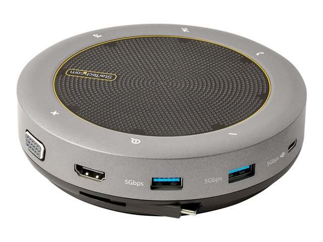 StarTech.com USB-C Conference Speaker Mini Dock, Portable Boardroom Speaker and Multiport Adapter, USB-C to VGA or 4K 60Hz HDMI, 2x USB-A (5Gbps) Hub, Mic/Speaker - Teams/Zoom/Softphone Speakerphone (DKTBRSPMPD) - Mini-dock - USB-C / Thunderbolt 3 / Thunderbolt 4 - VGA, HDMI DKTBRSPMPD