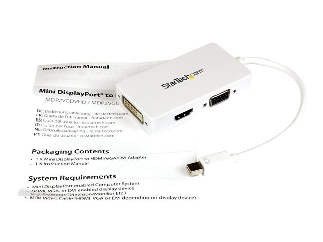 StarTech.com Adaptateur de voyage Mini DisplayPort vers DVI / VGA / HDMI pour MacBook - Convertisseur vidéo 3-en-1 - Blanc - Convertisseur vidéo - DisplayPort - DVI, HDMI, VGA - blanc - pour Apple MacBook Air