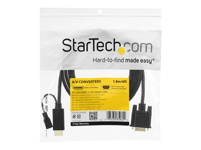 StarTech.com HDMI to VGA Cable - 10 ft / 3m - 1080p - 1920 x 1200 - Active HDMI Cable - Monitor Cable - Computer Cable (HD2VGAMM10) - Câble adaptateur - HDMI, Micro-USB de type B (alimentation uniquement) pour HD-15 (VGA) mâle - 3 m - noir - actif, support 1920 x 1200 (WUXGA)