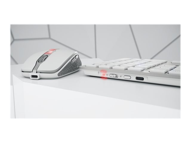 Assortie au clavier, la souris offre de nombreuses fonctionnalités. Ses côtés en caoutchouc et une forme compacte assurent une prise en main optimale. La résolution se règle par simple pression d'un bouton : 1000, 1600 ou 2400 dpi. Une LED d'état bicolore renseigne en temps réel sur l'état de charge de la batterie, la résolution choisie ou l'état de la connexion. Une molette et un logement magnétique pour le récepteur USB sont d'autres détails comblant toutes les attentes.
