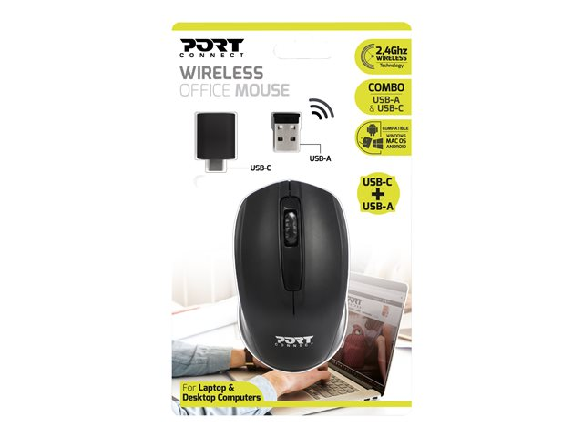 PORT Connect - Souris - droitiers et gauchers - optique - 3 boutons - sans fil - 2.4 GHz - récepteur sans fil USB - Pour la vente au détail