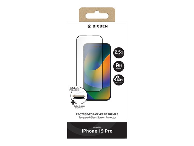 BIGBEN Connected - Protection d'écran pour téléphone portable - + SmartFrame - 2.5D - verre - couleur de cadre noir - pour Apple iPhone 15 Pro