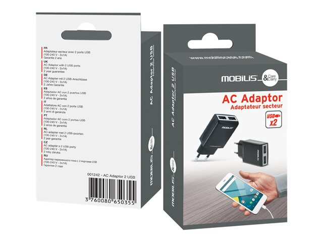 Mobilis - Adaptateur secteur - 1 A - 2 connecteurs de sortie (USB)