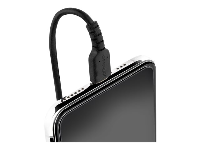 StarTech.com Câble USB vers Lightning de 50cm - Certifié Mfi - Adaptateur USB Lightning Noir, Gaine en TPE - Cordon Chargeur Iphone/Lightning Spiralé en Fibre Aramide Très Résistant (RUSB2ALT50CMBC) - Câble Lightning - USB mâle pour Lightning mâle - 50 cm - noir - bobiné