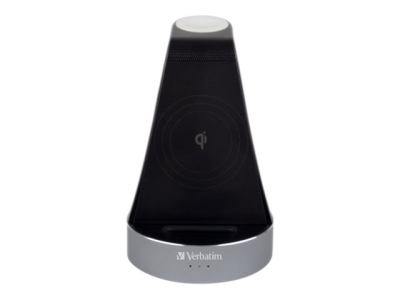 Chargez votre Apple Watch et votre iPhone (8 ou ultérieur) ou tout autre appareil compatible avec la recharge sans fil certifiée Qi grâce à la station de recharge 2-en-1 de Verbatim.