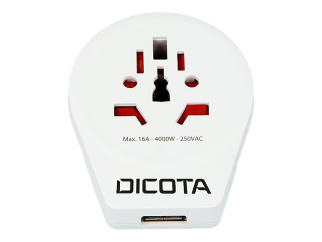 DICOTA World Adapter PRO & USB - Adaptateur secteur - CA 110/220 V - blanc D31282