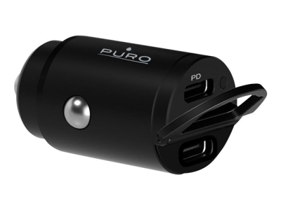 Puro - Adaptateur d'alimentation pour voiture - 30 Watt - 3 A - PD - 2 connecteurs de sortie (2 x USB-C) - noir