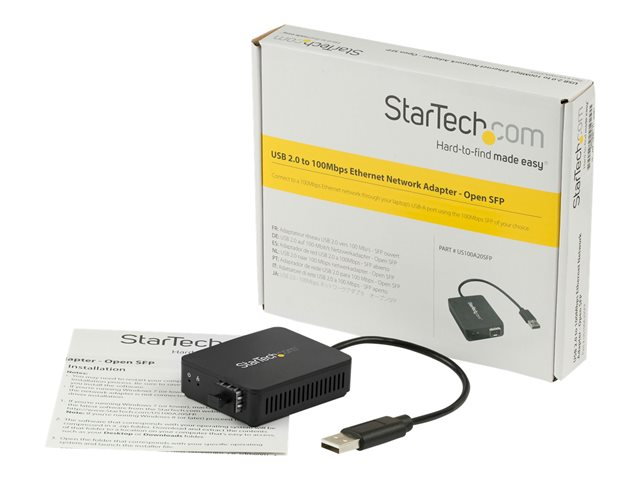StarTech.com Adaptateur réseau USB 2.0 vers fibre optique avec SFP ouvert - Convertisseur USB vers Ethernet 10/100 Mbps - Adaptateur réseau - USB 2.0 - SFP (mini-GBIC) x 1 - noir US100A20SFP