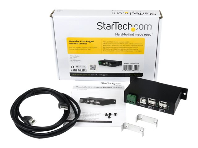 StarTech.com Rackmount USB 2.0 Hub - 4 Port Rugged Industrial USB 2.0 Hub - Concentrateur (hub) - 4 x USB 2.0 - Montage sur rail DIN - Tension CC - pour P/N: ITB20D3250, MSDREADU2OTG, USB2HAB15, USB2HAB30AC, USB2HAB50AC, USB2HABM1, USB2HABM6RA ST4200USBM