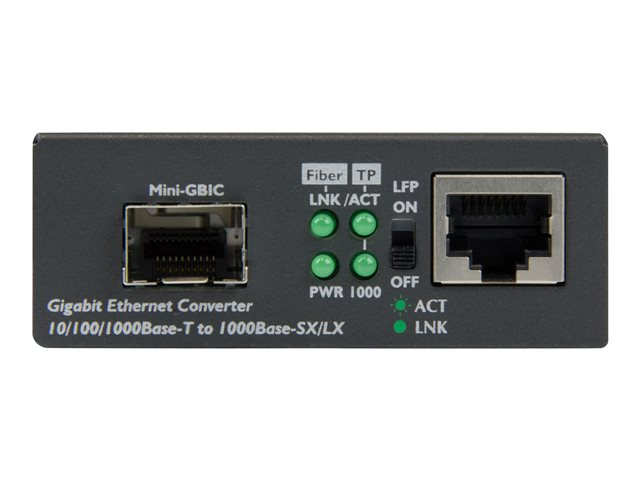Ce convertisseur de média fibre optique constitue un moyen facile et économique d'étendre votre réseau sur fibre optique à l'aide du SFP de votre choix. Il convertit une connexion Ethernet RJ45 sur cuivre en connexion Gigabit sur fibre optique de manière à prolonger votre réseau sur de plus grandes distances ou de brancher des postes de travail à des commutateurs. Voici une excellente solution de réseau pour les campus, les entreprises, les établissements gouvernementaux, les stades et toute autre installation exigeant un accès réseau.