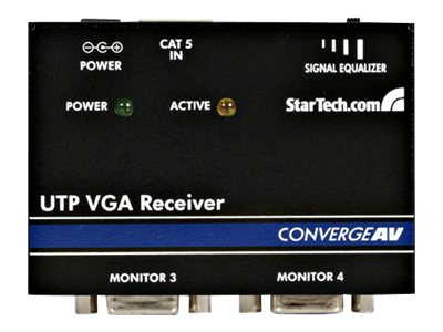 Le récepteur extendeur vidéo VGA pour câble de catégorie 5 ST121REU est spécifiquement conçu pour être utilisé comme unité réceptrice du transmetteur extendeur UTP VGA sur Cat5 ST121, ce qui vous permet de répartir et de prolonger une source VGA unique vers un maximum de huit écrans distants.