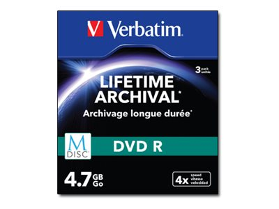 Verbatim M-Disc - 3 x DVD-R - 4.7 Go 4x - surface imprimable par jet d'encre - boîtier CD étroit 43826